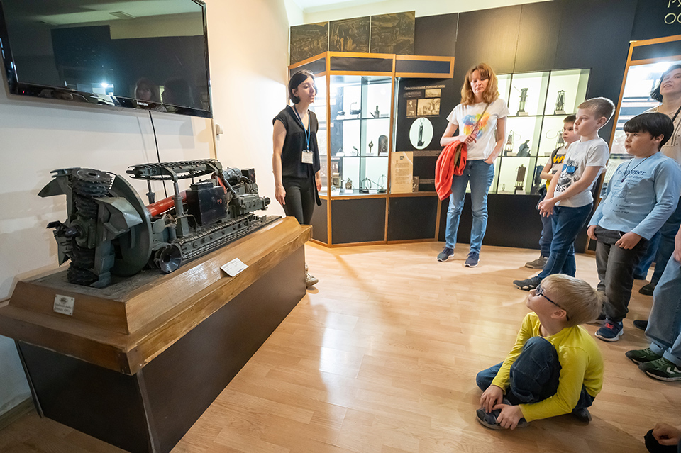 - на экскурсии по экспозиции вы узнаете, что такое «выработка» и «штрек», познакомитесь с историей шахтного освещения и эволюцией рабочих инструментов, на основе действующих моделей увидите, как работает шахтная техника…