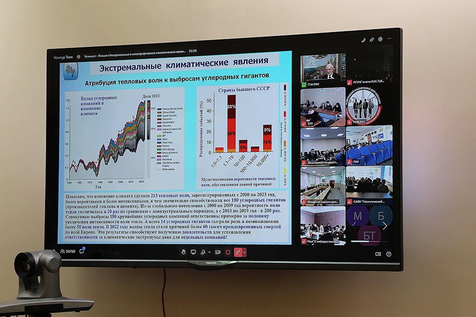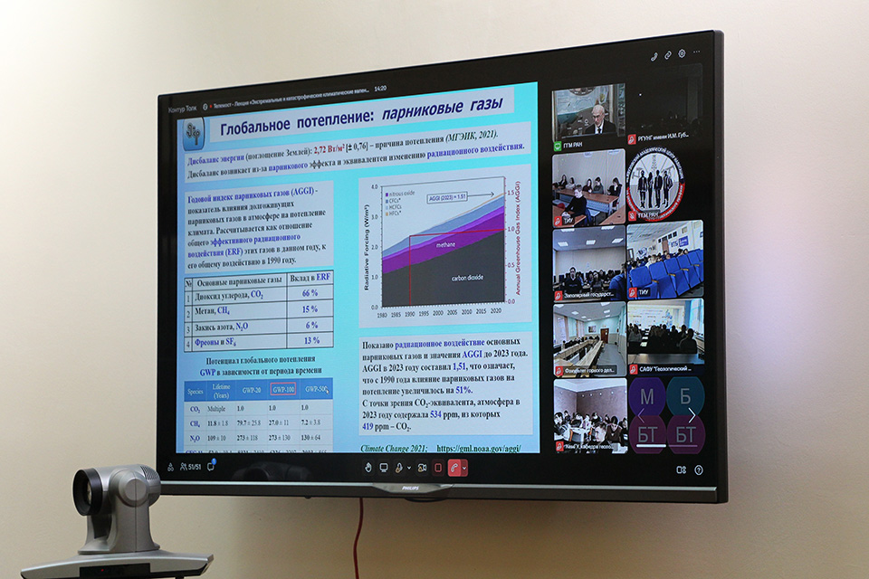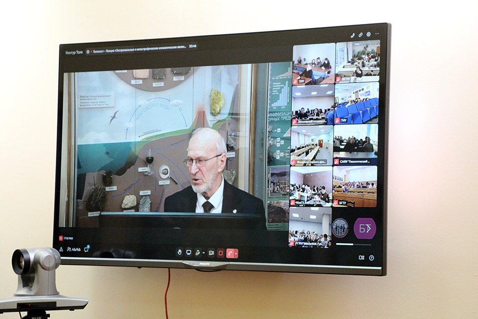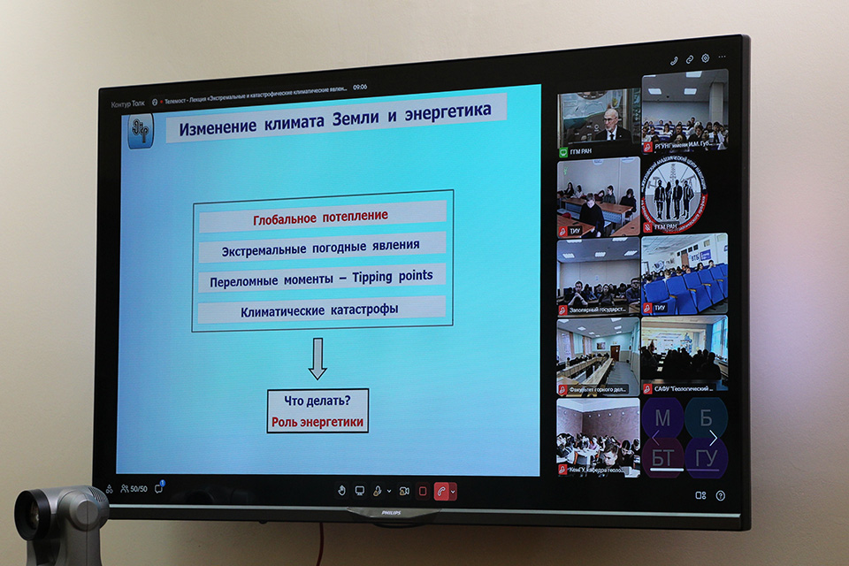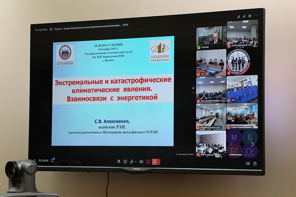 В рамках Телемоста состоялась трансляция лекции Научного руководителя Института теплофизики им. С.С. Кутателадзе Сибирского отделения РАН, Академика РАН, д.ф.-м.н. АЛЕКСЕЕНКО Сергея Владимировича «Экстремальные и катастрофические климатические явления. Взаимосвязи с энергетикой».