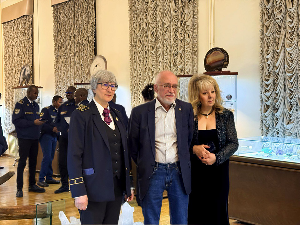 После официальной части участники встречи имели возможность ознакомиться с богатой коллекцией музея. Директор С.В. Черкасов провел экскурсию по залу Исторических коллекций, в котором представлены минералы и горные породы, ископаемые остатки животных и растений, собранные в конце XVIII – начале XX вв. выдающимися отечественными естествоиспытателями – профессорами Императорского Московского университета. Также гости посетили зал, где представлена коллекция С.М. Миронова.
