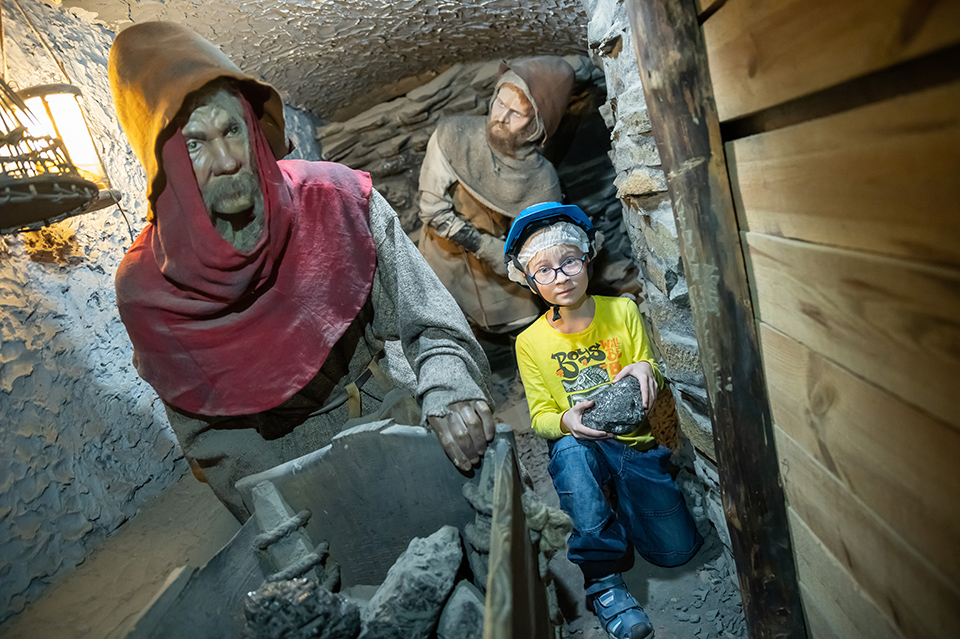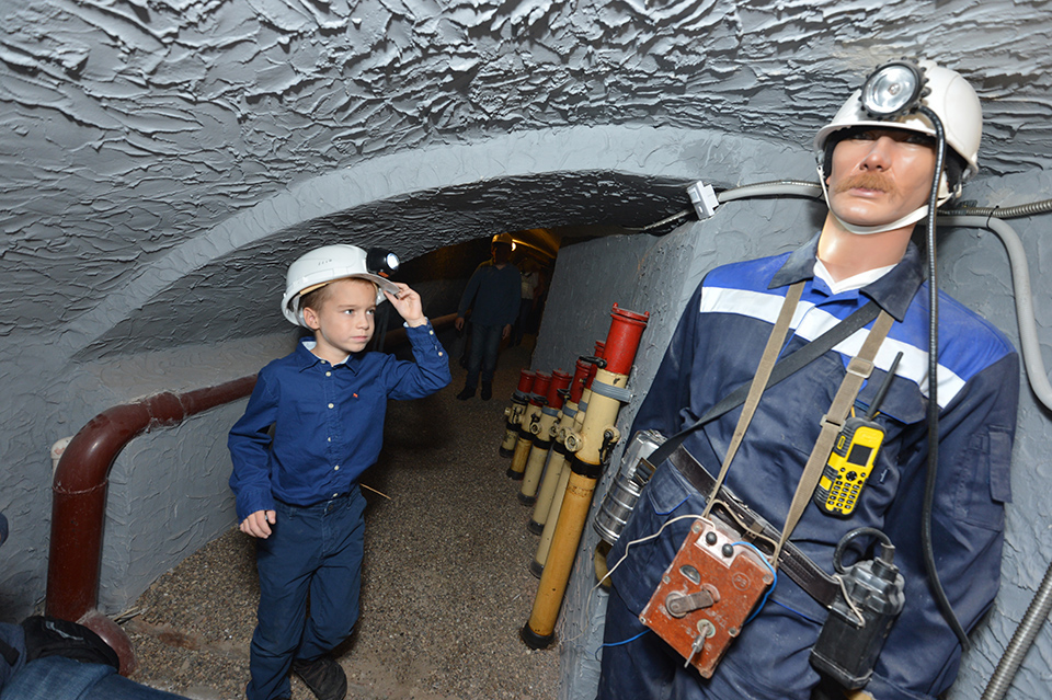 - на экскурсии по экспозиции вы узнаете, что такое «выработка» и «штрек», познакомитесь с историей шахтного освещения и эволюцией рабочих инструментов, на основе действующих моделей увидите, как работает шахтная техника…