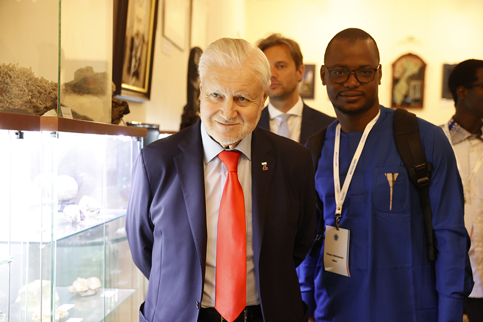 После общения Сергей Михайлович провел для участников спецкурса экскурсию по залу музея, где хранится коллекция минералов, которую С.М. Миронов собирал более 40 лет и передал в дар музею.