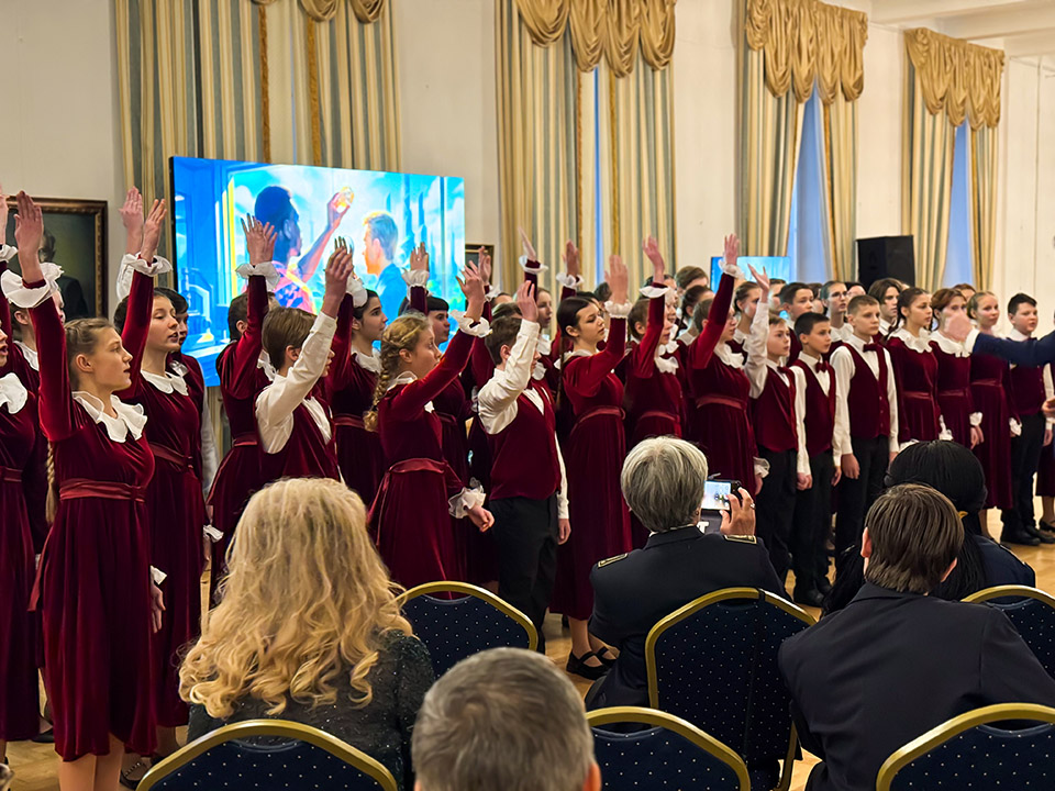 В завершении деловой части для гостей выступил Большой детский хор имени Виктора Сергеевича Попова, художественный руководитель и главный дирижёр хора Георгий Журавлев.