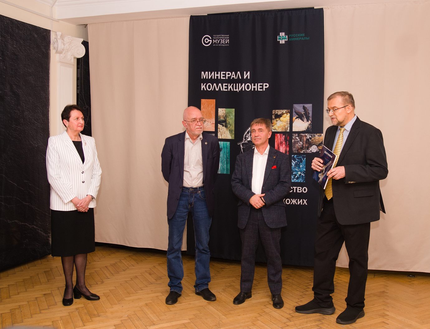 Торжественную церемонию открыли директор Государственного геологического музея им. В.И. Вернадского РАН Сергей Владимирович Черкасов и руководитель компании «Русские минералы» Михаил Юрьевич Аносов.